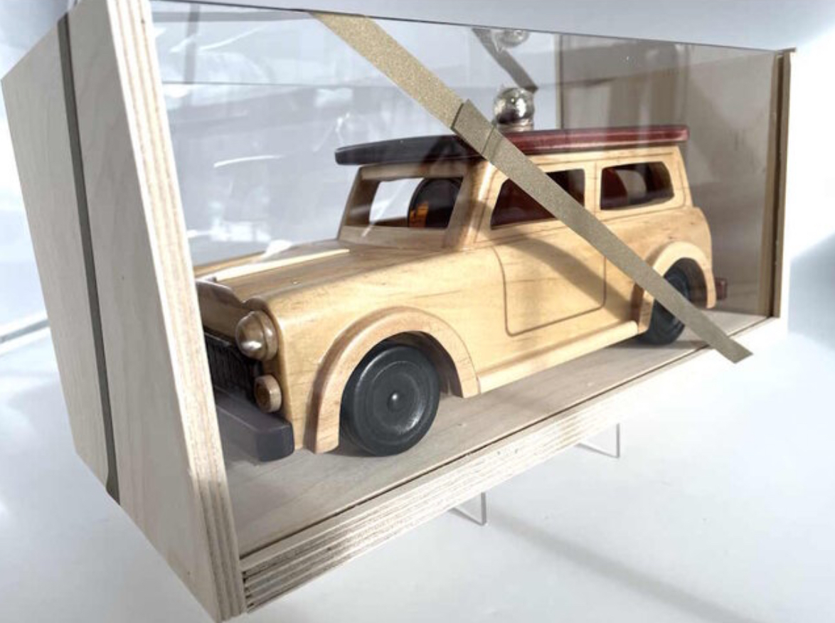 Deze mini is gemaakt van hout en glas. Het is niet te verzenden